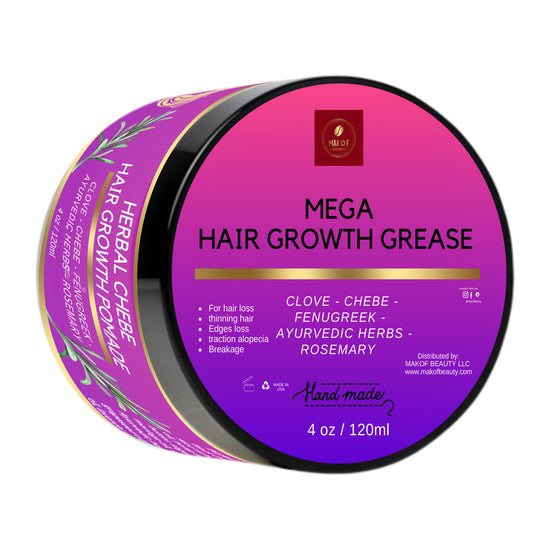 Unlock the secret to healthier, longer hair with our Chebe Hair Growth Grease. Formulated to lock in moisture, this nourishing product prevents dryness and breakage, ensuring your hair thrives. Infused with soothing ingredients, it promotes scalp health, creating the perfect environment for new growth. Rich in essential oils and nutrients, our grease nourishes hair follicles, strengthening each strand from root to tip. With a protective barrier against environmental damage and heat, it keeps your hair safe and resilient.