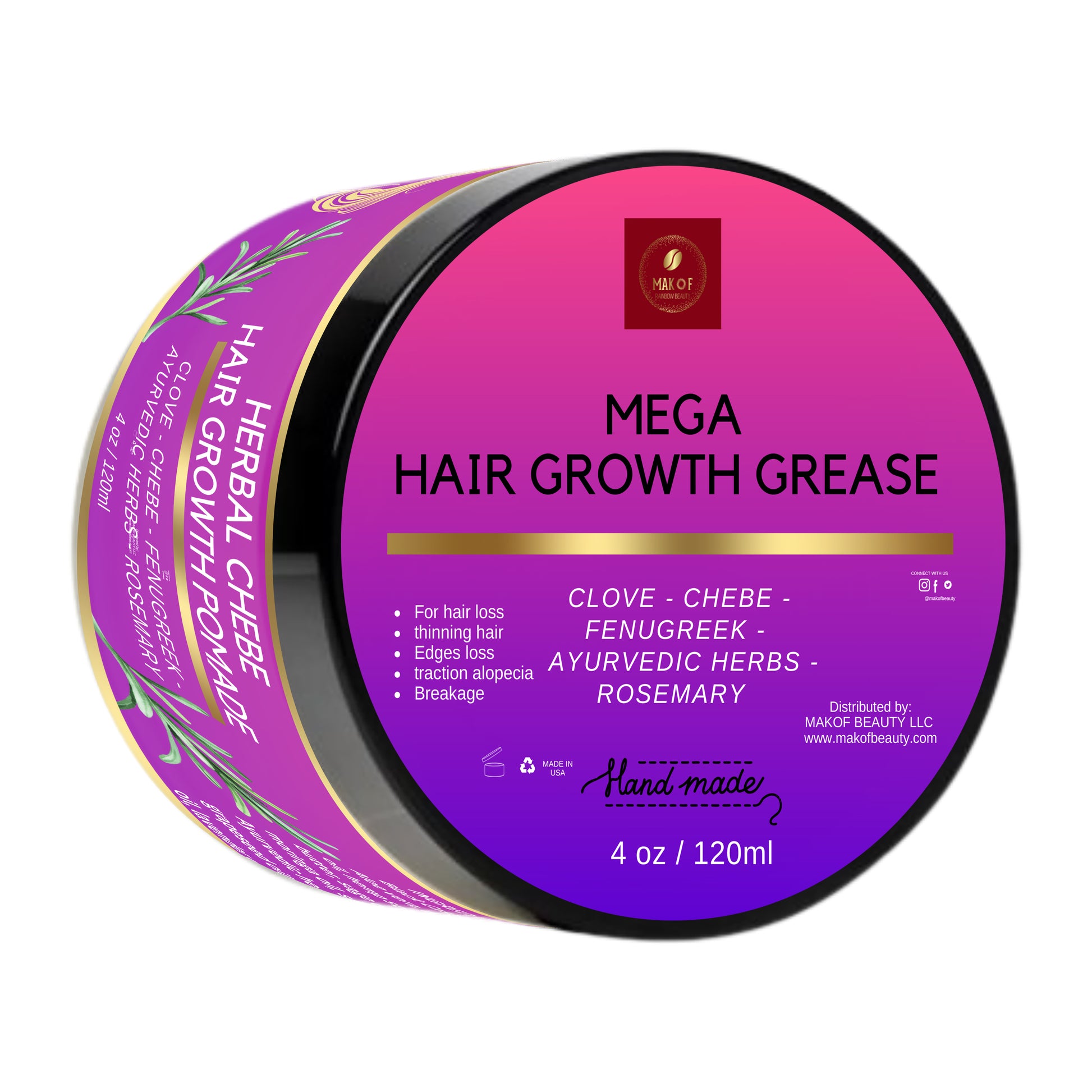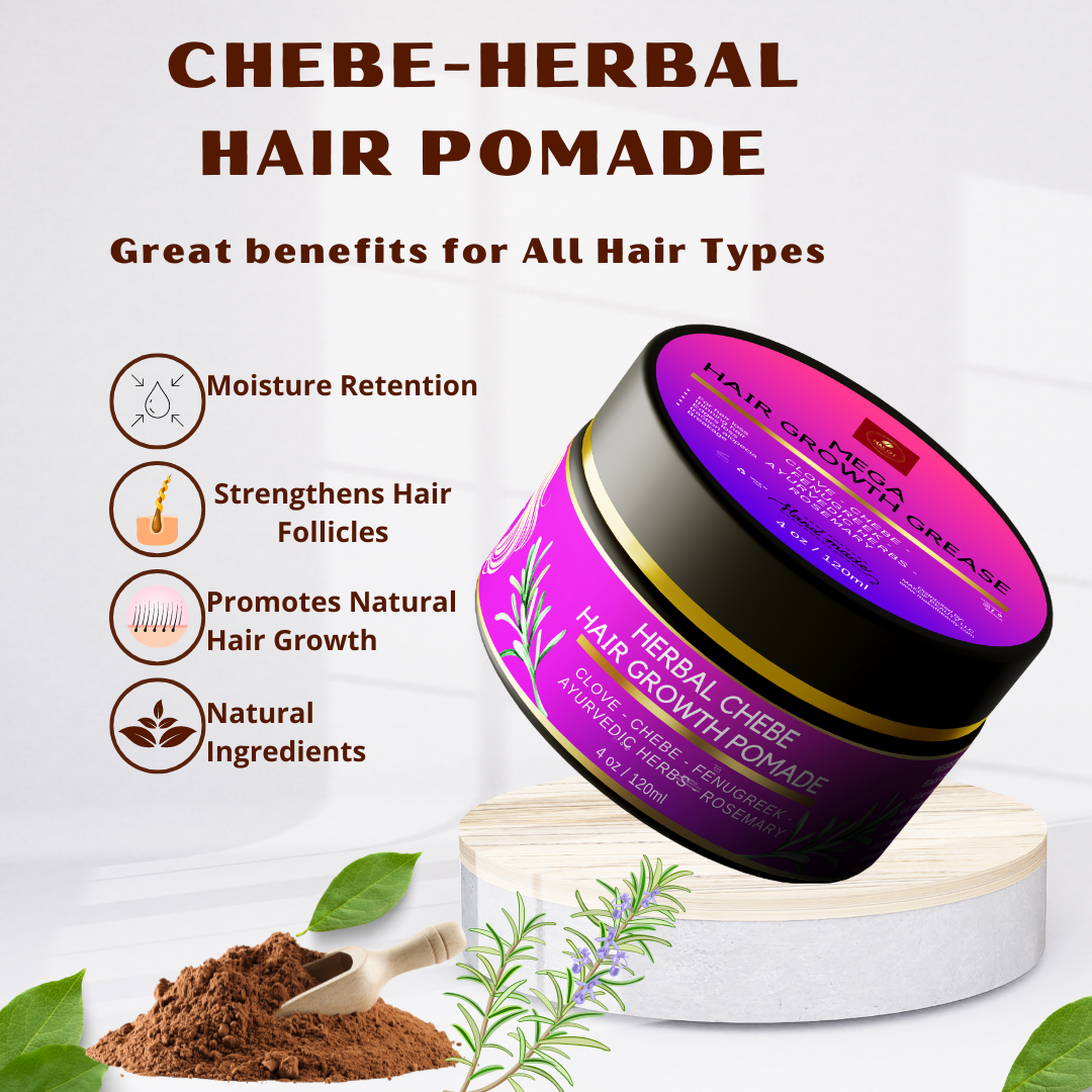 CHEBE MAGIC HAIR GROWTH GREASE, with Organic Chebe from Chad, Rosemary, Moringa leaf and Ayurvedic herbs. Stimulate scalp for Rapid Growth. For All Hair Types