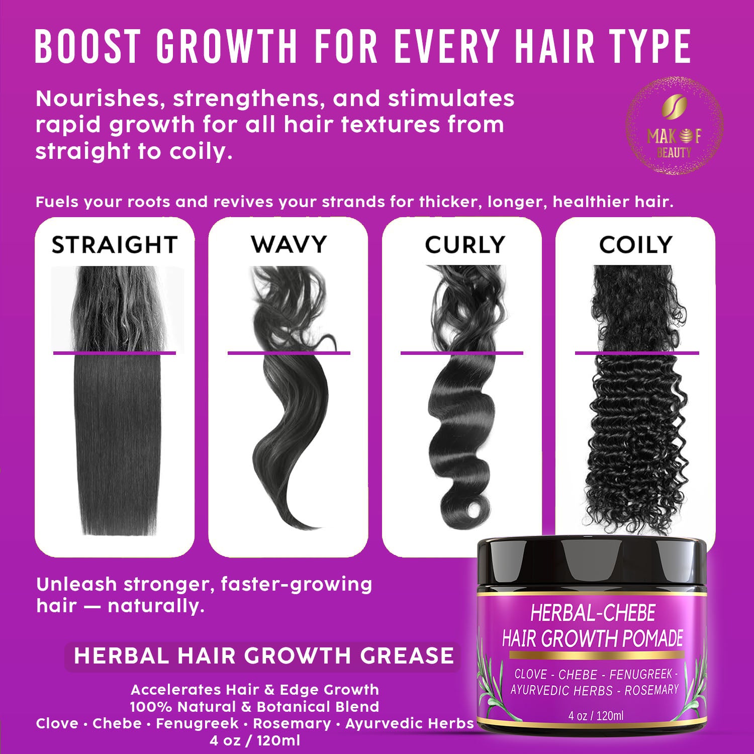 CHEBE MAGIC HAIR GROWTH GREASE, with Organic Chebe from Chad, Rosemary, Moringa leaf and Ayurvedic herbs. Stimulate scalp for Rapid Growth. For All Hair Types